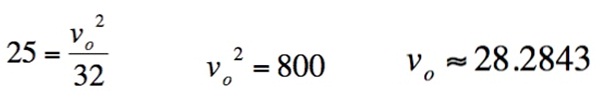 Jadi, dengan memecahkan rumus mengetahui bahwa jangkauan tembakan harus 25 kaki kita miliki